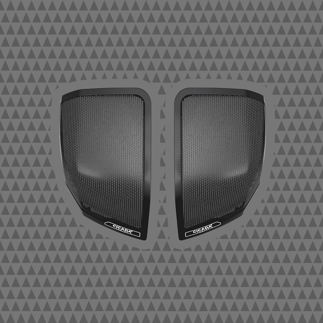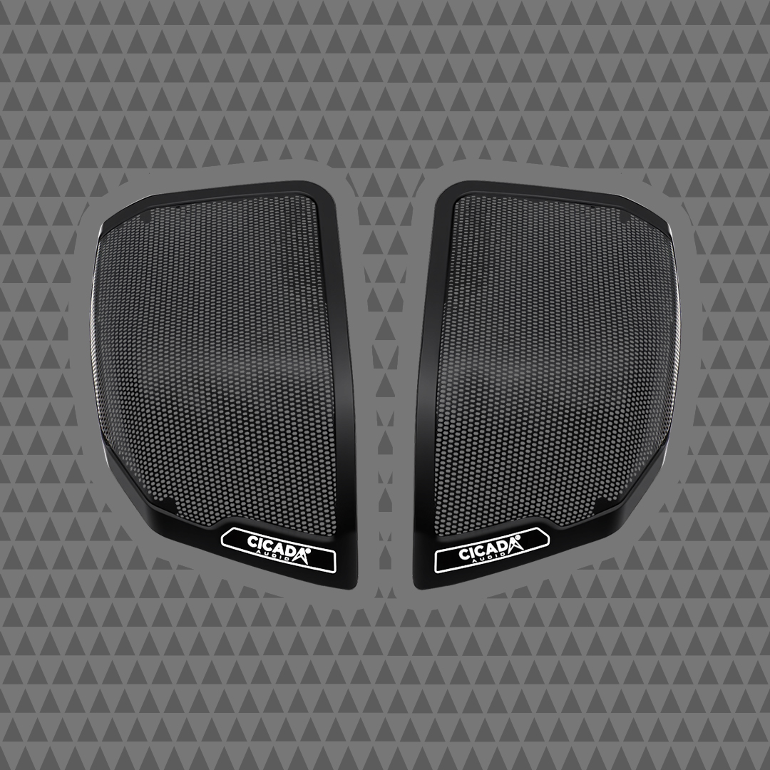The Cicada Audio® 24CHDCVOLG OEM Style Branded Grills are precision-engineered for the rear saddlebag lids of 2024 and newer H-D® motorcycles. These grills offer a seamless OEM-style fit and showcase the bold Cicada Audio® branding, making them the perfect finishing touch for your rear audio setup.